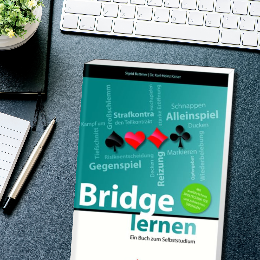 Eine gute Grundlage, um die Regeln und Strategien des Spiels zu verstehen bieten auch Bridgebücher. Es gibt mittlerweile Titel, die ermöglichen, was früher kaum vorstellbar war: Bridge Schritt für Schritt im Selbststudium zu lernen – bis hin zum vollständigen Spielverständnis.