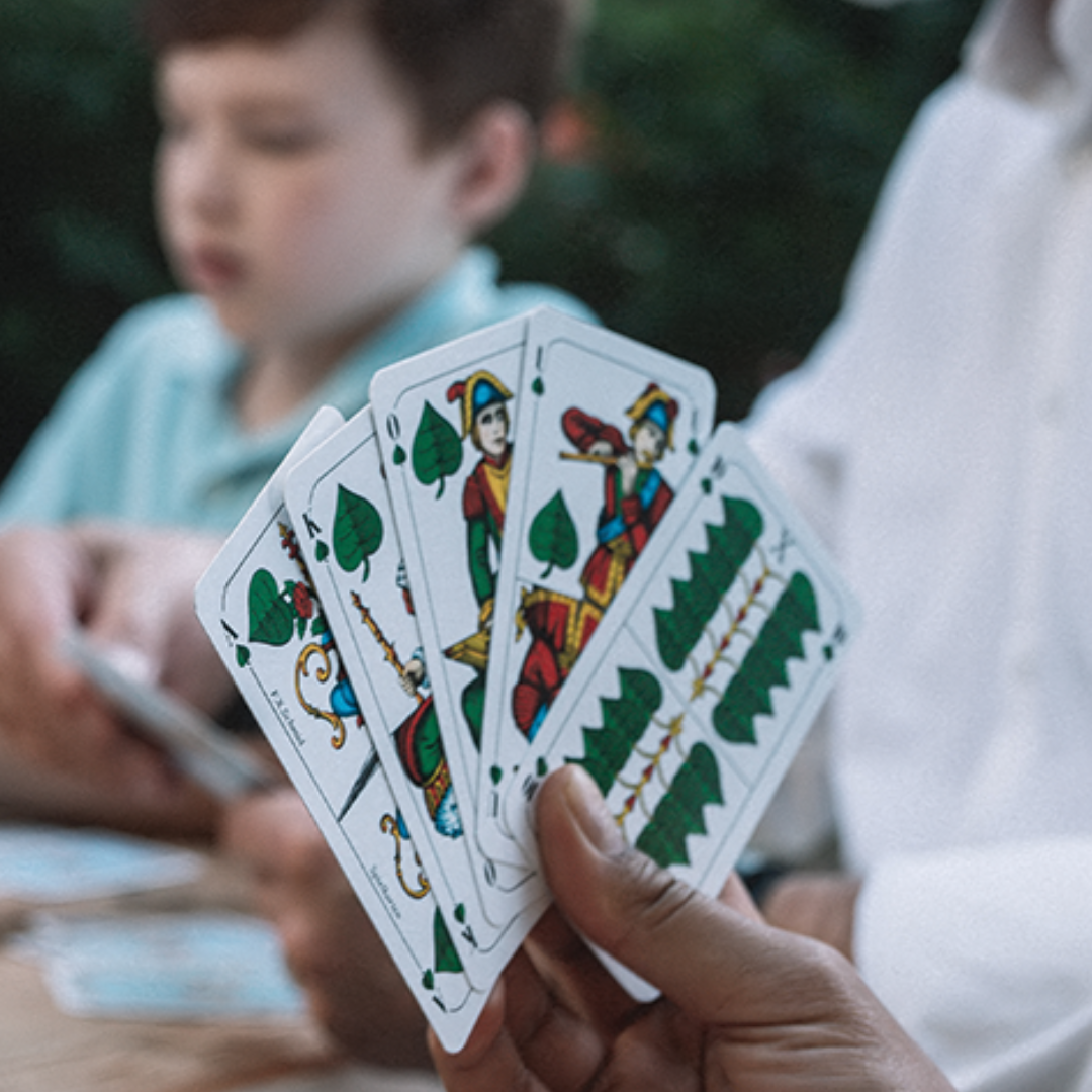 Ob Rommé mit 110 Karten, Doppelkopf mit 40 oder Skat mit 32 – schon ein kleines Blatt eröffnet unzählige Möglichkeiten und Kombinationen. Kein Spiel verläuft wie das andere, und mit jeder Runde wächst das Gefühl für Taktik, Timing und Spielverlauf.